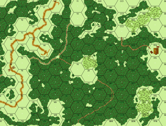 | Misc Rules: | Stream: Dry, Roads: Paths in Wood hexes, NQ (A20.3). D: Entire OB sets up HIP, Wire, Minefields. |