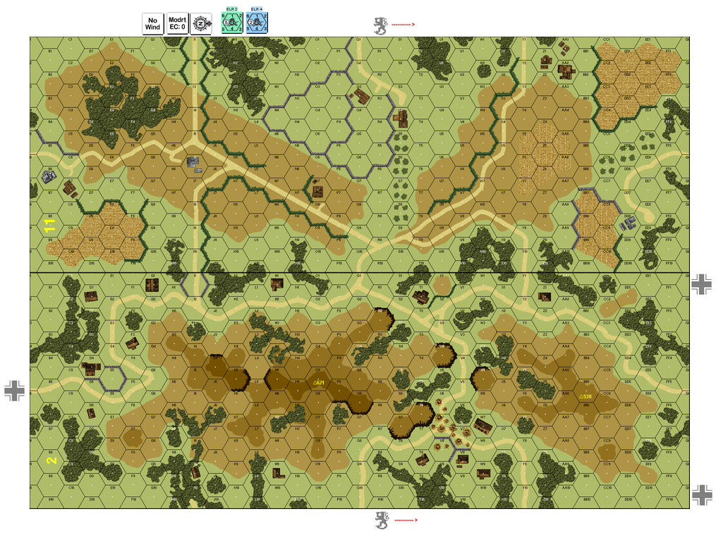 | Misc Rules: | A: Trucks subject to Bog as if Mud (D8.23) if not on road. D: Roadblocks (B29) |