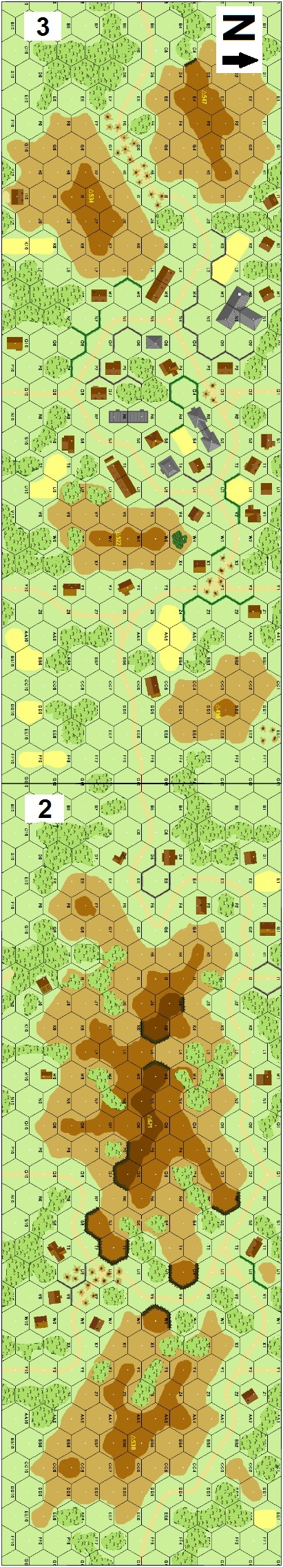 | Shorten Game Length to 7 turns. Replace the Victory Conditions with the following: “The Germans win at game end if they have more Good Order squad-equivalents than the British on hill hexes of board 2. Good Order MMC on Level 3 hexes count double.” Replace SSR 4 with the following: “One German 8-0 possessing the radio must set up HIP to direct the fire of a single offboard 75* leIG 18 INF Gun (German Ordnance Note 15). Radio Contact must be gained/maintained normally, but Battery access is NA. The 8-0 serves as a spotter (C9.3) and all principles of spotted indirect fire (C9.3-.31) apply [EXC: Gun Malfunction is NA], including ROF decrease (C3.33) and target acquisition. For TH# determination purposes, range is counted from hex 3A5.”. In the British balance replace “7 Turns” with “6 Turns”. | MMP |