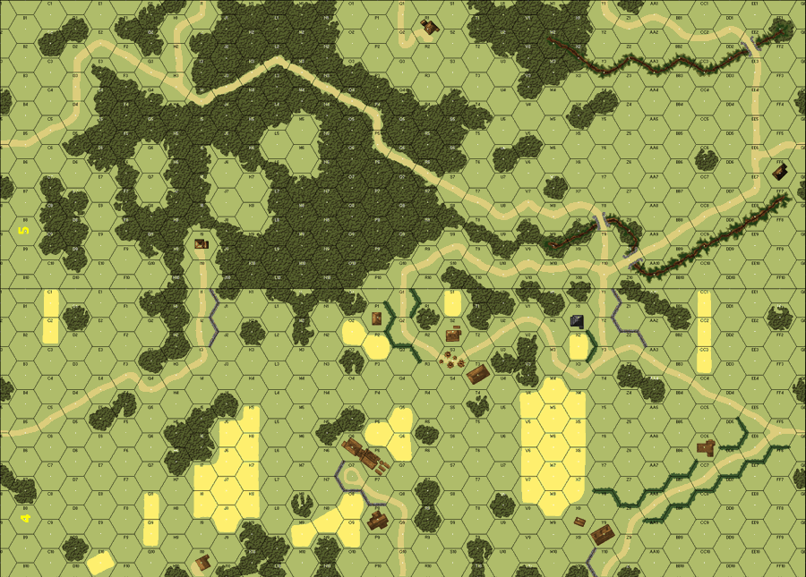 | Misc Rules: | Bldg 4O6: Stone; Foxholes may not exist in Gully hexes. |