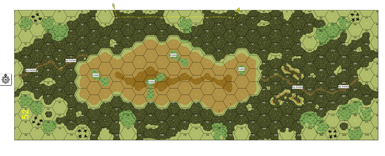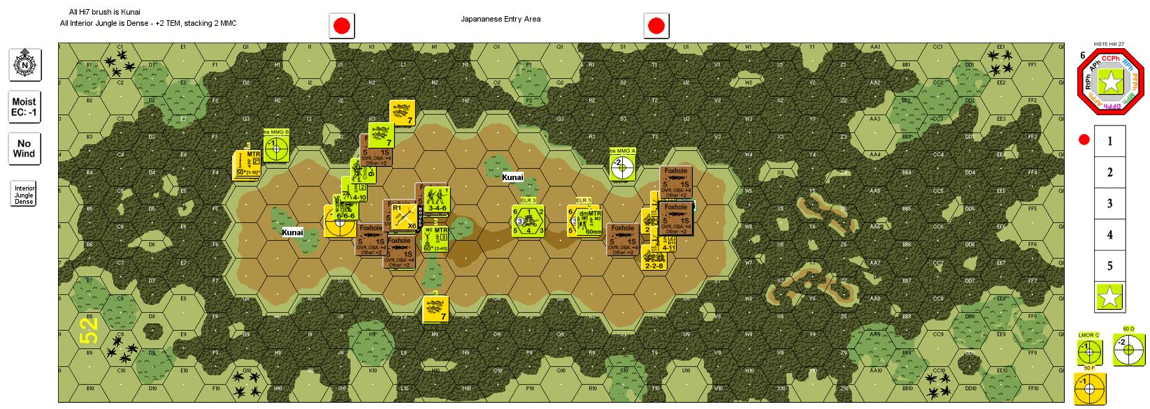 | Misc Rules: | PTO, LJ. (Interior jungle is Dense, no paths). Entrenchment attempts +1 DRM |