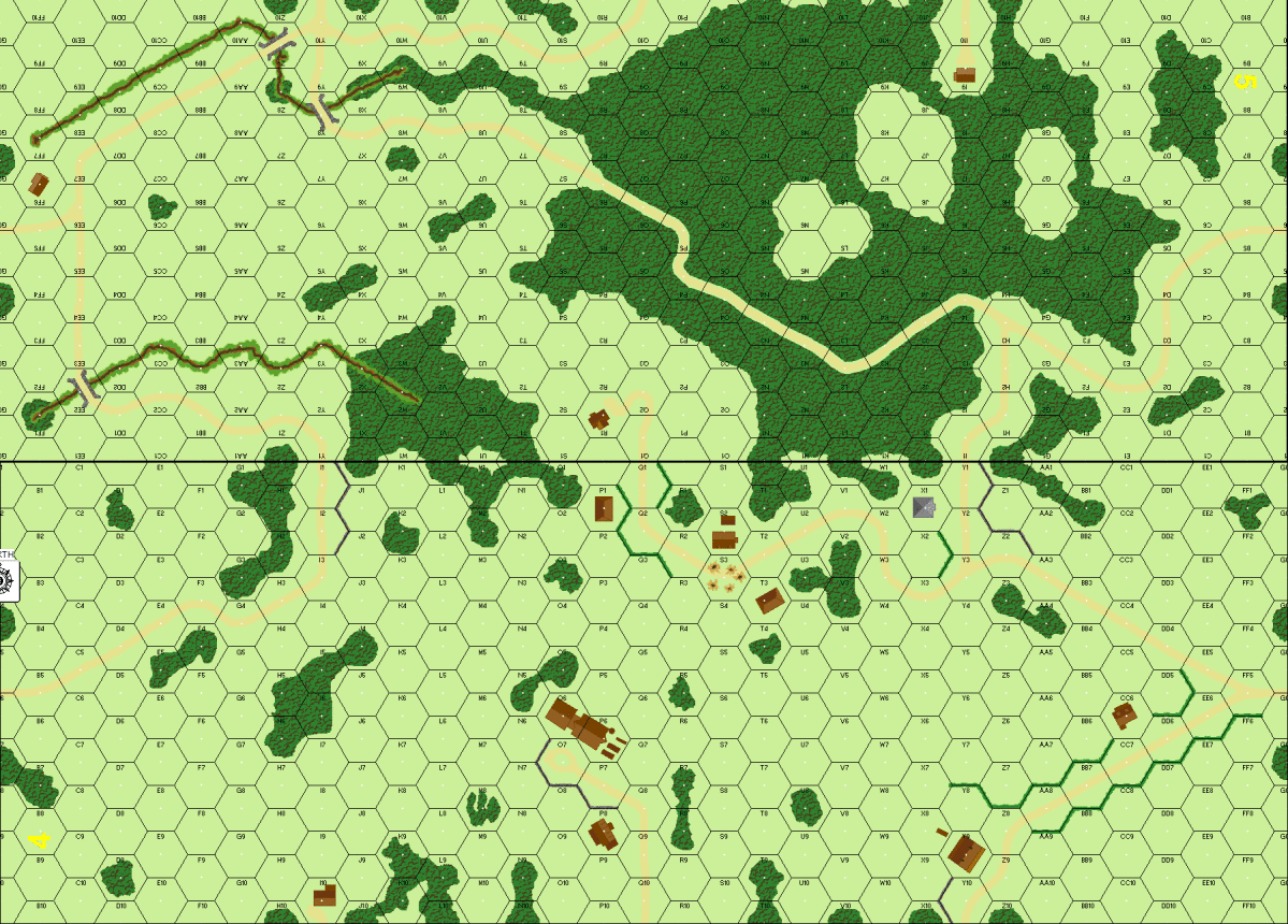 In order to improve the flow of supplies to the German troops driving on Leningrad, the need for the great "Leningrad Highway" became apparent. A key position on the highway was the Soviet strongpoint prepared at Luga. To take the Luga position, the decision was made to drive past the highway behind Luga and take the strongpoint from the north. One of the actions, as the Germans attempted to roll up the Russian defenses covering the highway, was conducted by the 409th Infantry Regiment. The plan called for a crossing of the Oredezh River and the securing of the village of Panikovo. The river crossing was completed with little enemy resistance. Patrols were sent out and returned with reports of no sign of the Russians. At 1500 hours the 1st Battalion moved out toward the village. Soon, the Germans discovered the reason for the silence. A deadly trap had been laid; Russian infantry came rushing out of the woods along with tanks, striking at the exposed flank of the battalion. In an effort to speed its advance through the heavy forest, the battalion commander had neglected to bring along any anti-tank guns. He had little choice but to form a "hedgehog" and await relief.Attacker: Russian (XLI Corps, 11th Soviet Army/Armor Support)