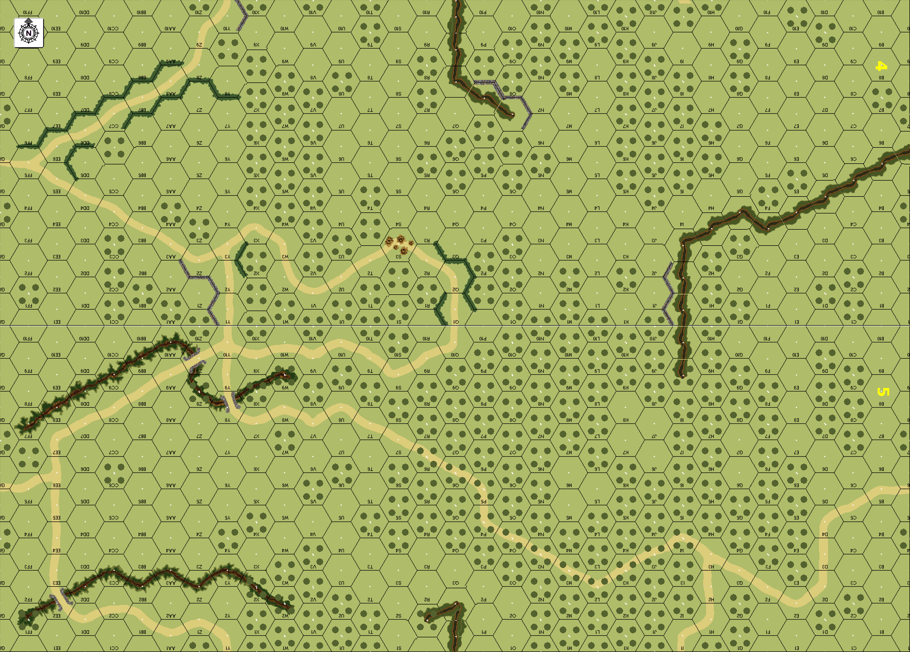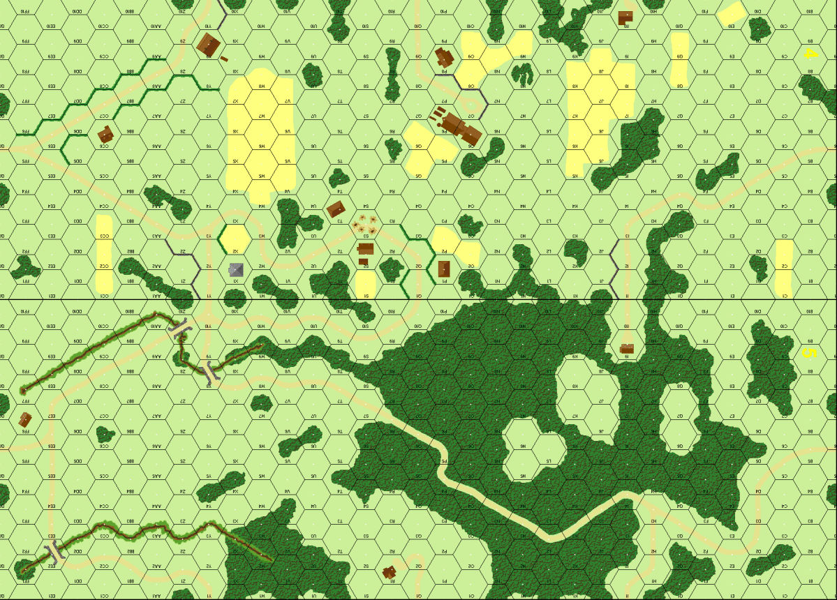 | Misc Rules: | Night (E1), Grain/Woods/Bldgs: Orchards (B14) . Some road segments become Gullies |