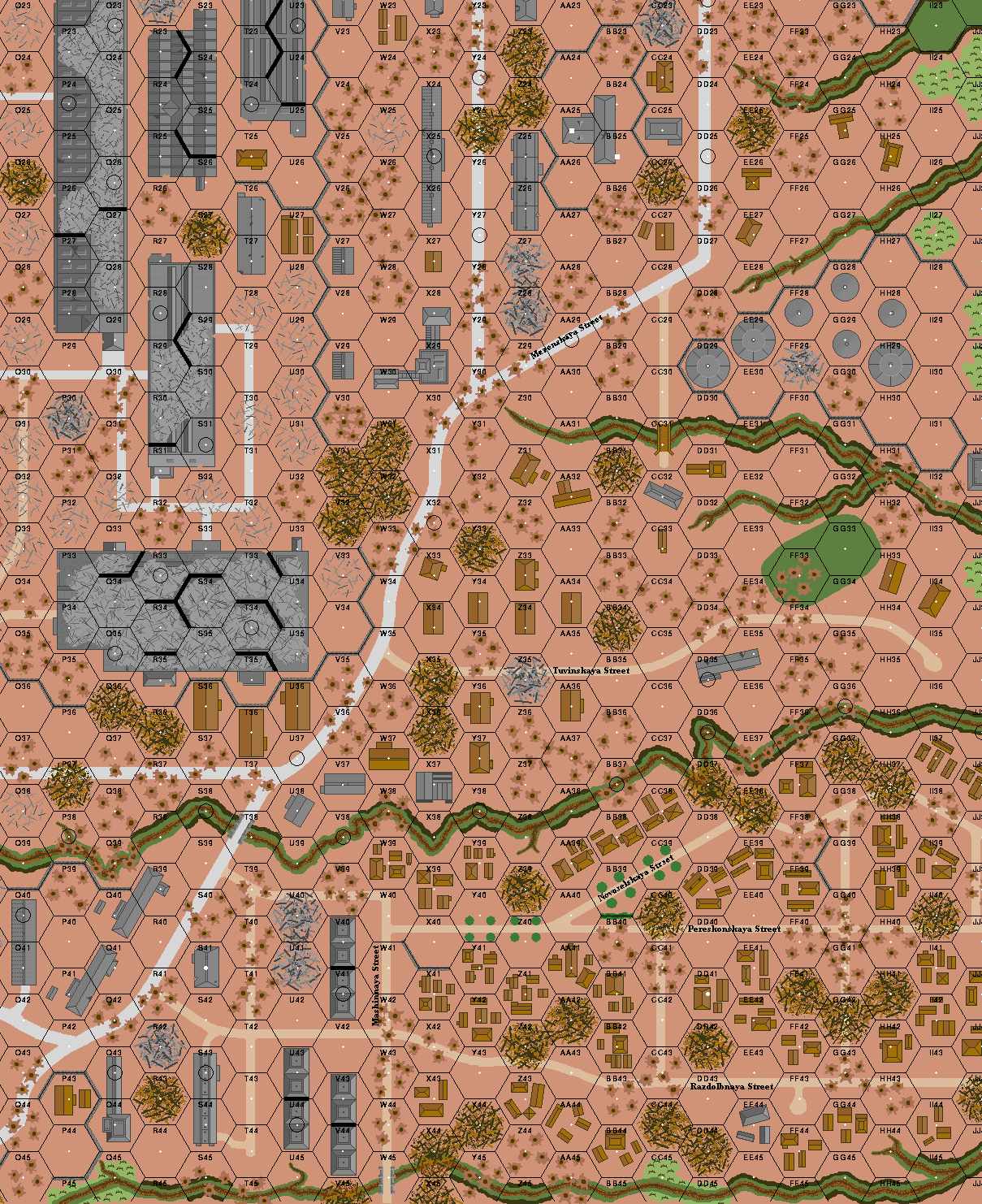 For the Russians, this was rapidly becoming yet another critical day in the defense of their ruined city. Elements of the German 79th Infantry Division had pushed toward the Krasny Oktyabr steel mill, bringing the HQ of Guryev’s 39th Guards Division under attack. Meanwhile, farther north, other elements of the German division battled their way eastwards through the Bread Factory in an attempt to reach the river. Luckily for the Soviets, two fresh battalions of Lt.-Col. Sokolov’s 45th Shchors Rifle Division had debarked overnight, taking up positions between the Barrikady and Krasny Oktyabr factories. They had scarcely settled in when the renewed German offensive commenced.Attacker: German (Infanterie Division 79)