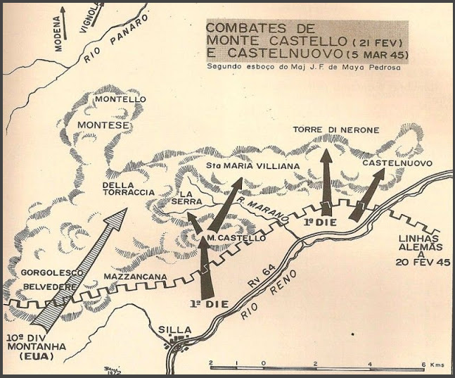 Following the sinkings of a number of their merchantmen by U-boats, Brazil declared war on Germany and Italy in August 1942. A year later, after lengthy training, the Brazilain 1st Expeditionary Infantry Division arrived in Naples in mid July 1944. Put at General Crittenberger’s disposal, the Brazilian division saw heavy action during the Allied offensive to crack the Gothic Line in October and November. After pushing into the Reno Valley as part of the IV Corps advance, it attacked Monet Castello – a dominating height overlooking the vital Highway 64 – on 29 November, but suffered a bloody repulse. Crittenberger, eager to break through to Bologna before the onset of winter, ordered another attempt. In heavy fog, on 12 December, the battle-worn Brazilians set foot on the lower slopes of Monte Castello once more. . .Attacker: Brazilian (Syseno Battalion, 1st Infantry Regiment and 1st Self-Propelled Mortar Regiment)
