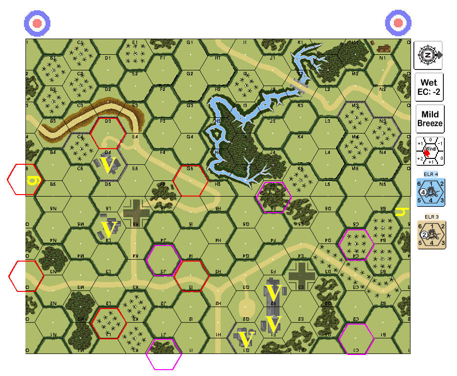 | Misc Rules: | Hedges: Barbed Wire Fence (P3). +1 LV on attacks 2 hexes or more. A: FTV (D3.6) |