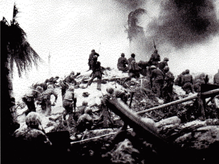 Following the costly repulse of Company B of the 2nd Marine Regiment on Tanambogo, the 3rd Battalion of the 2nd Marines was ordered to land on Gavutu at dawn, relieve the exhausted paratroopers, and capture Tanambogo by the end of the day. Ashore at 0700 that Saturday, the 3rd Battalion spent the morning methodically blasting the Japanese out of cave emplacements with TNT. At 1330, with Gavutu secured, they turned their attention to the island across the inlet. A two pronged attack was settled on. Company I, along with two tanks and supported by continuous air and naval bombardment, would make an amphibious assault on the same beach where the night attack had come to grief. Meanwhile, a platoon of K Company would rush across the causeway on foot to outflank the Japanese defenders on the hill.Attacker: American (USMC) (1st Platoon, Company K, 2nd Marine Regiment/Company I, 3rd Battalion, 2nd Marine Regiment and Company B, 2nd Marine Tank Battalion)