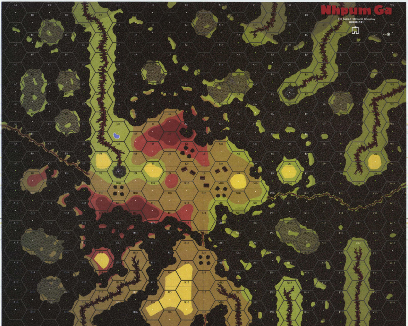 | Hexrow U is misnumbered. The first hex is U1, then a hex with no coordinate. Call that hex "U1.5". | MMP |