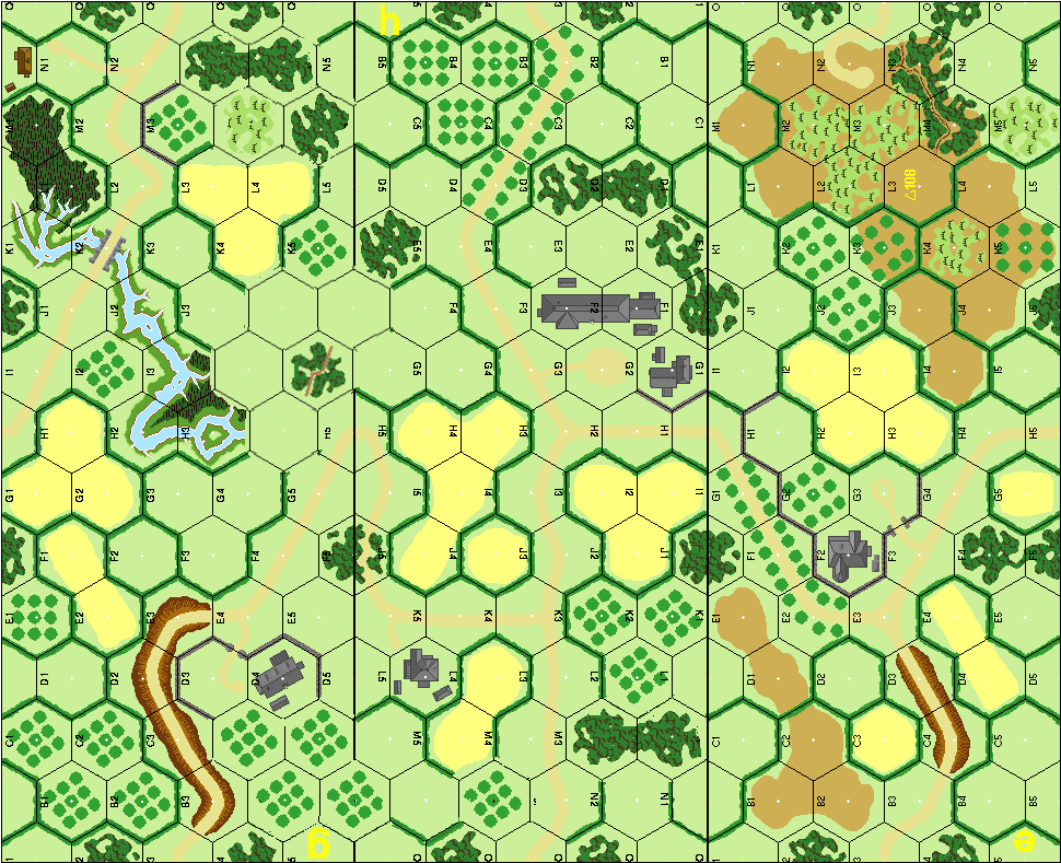 | Misc Rules: | Bocage, Heavy Mist, sunken roads are Sunken Lanes. No level 2 Hills |