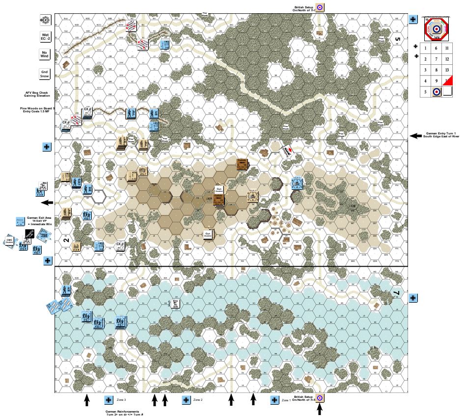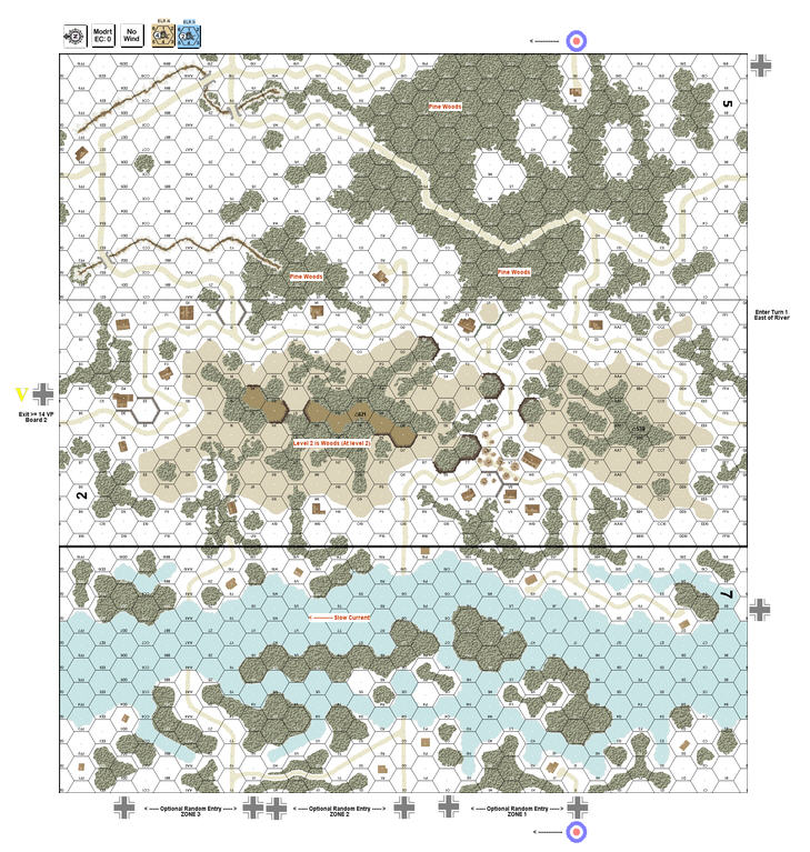 | Misc Rules: | GS (E3.72), Pine Woods (B13.8), Level 2 hills: Level 1 Woods. A: Rafts (E5.21), Skis (E4.21) |