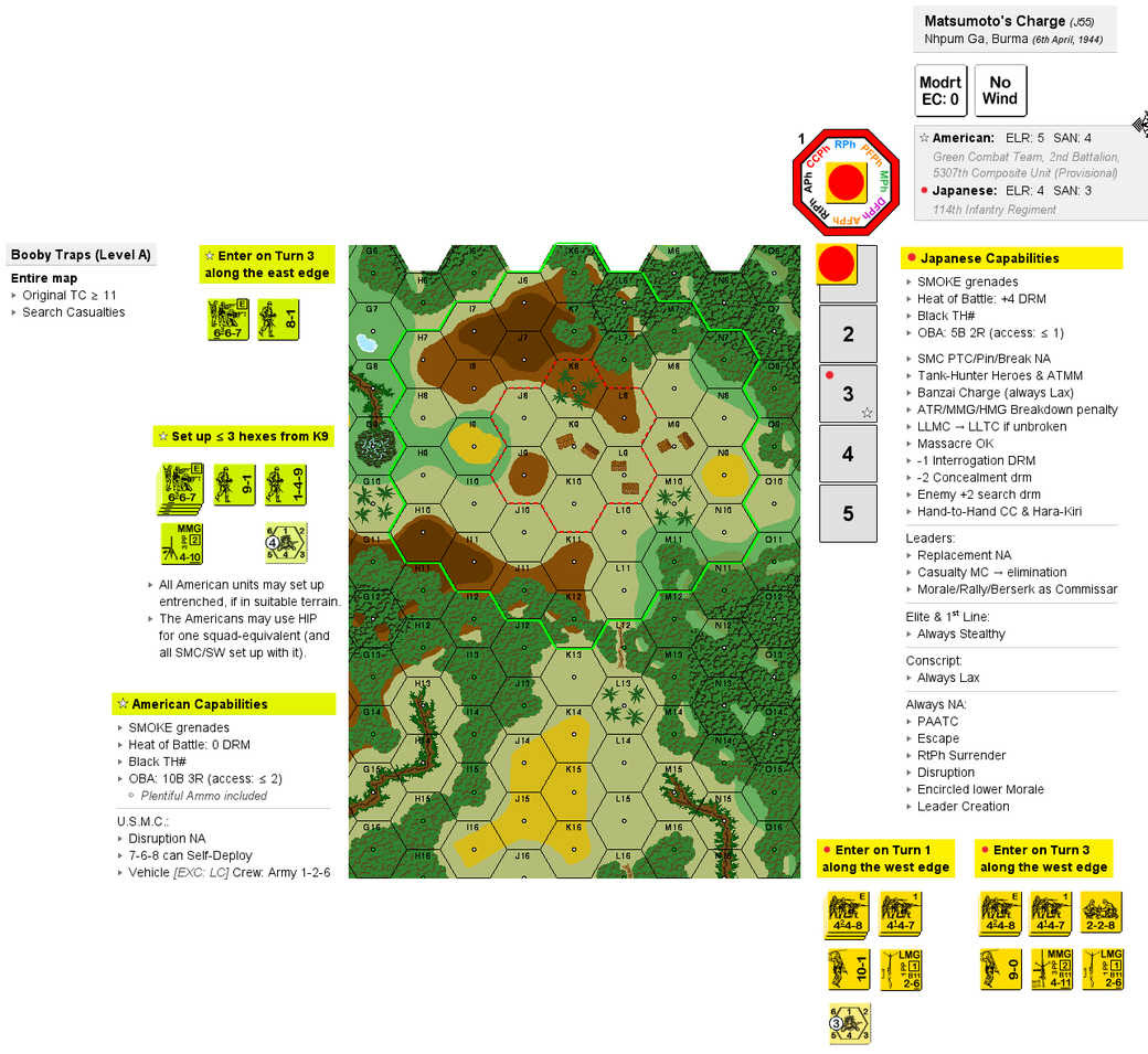 | Misc Rules: | PTO (G.1), LJ (G2.1). LV (E3.1). A: Stealthy (A11.7), D: Level A BT (B29.9) |