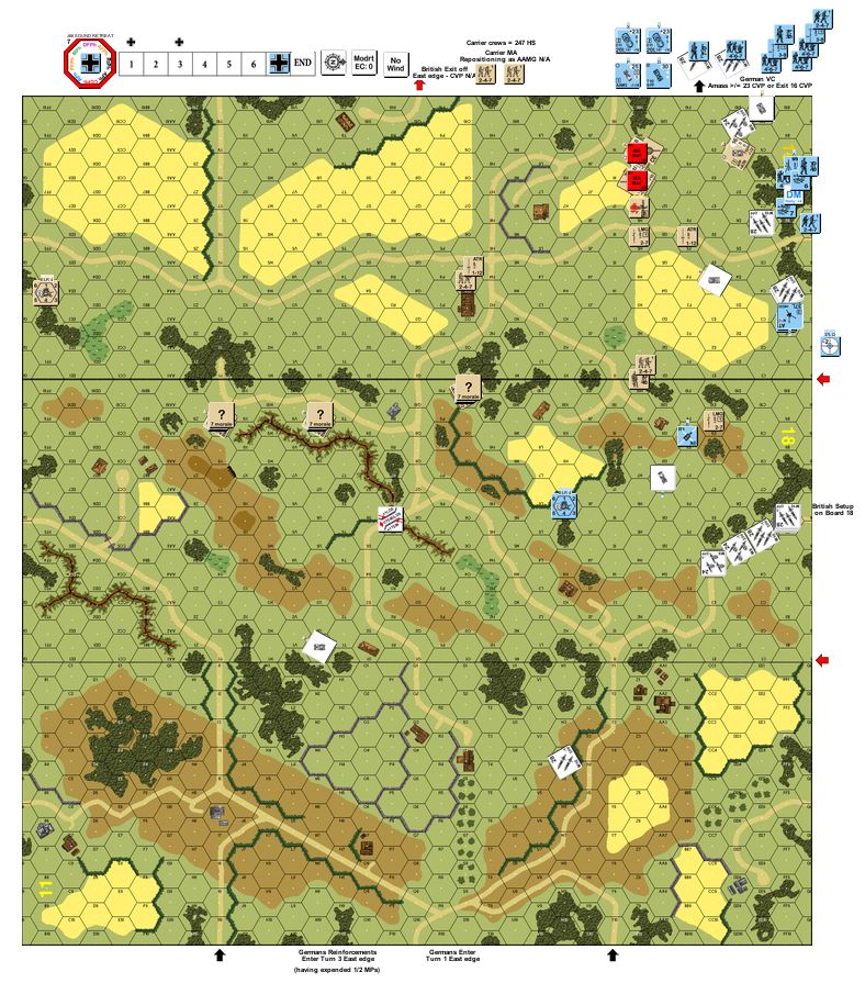 Defender: British (25th Brigade, 1st Royal Irish Fusiliers, and 2nd Essex with 50th Division's Cavalry Light Tanks)