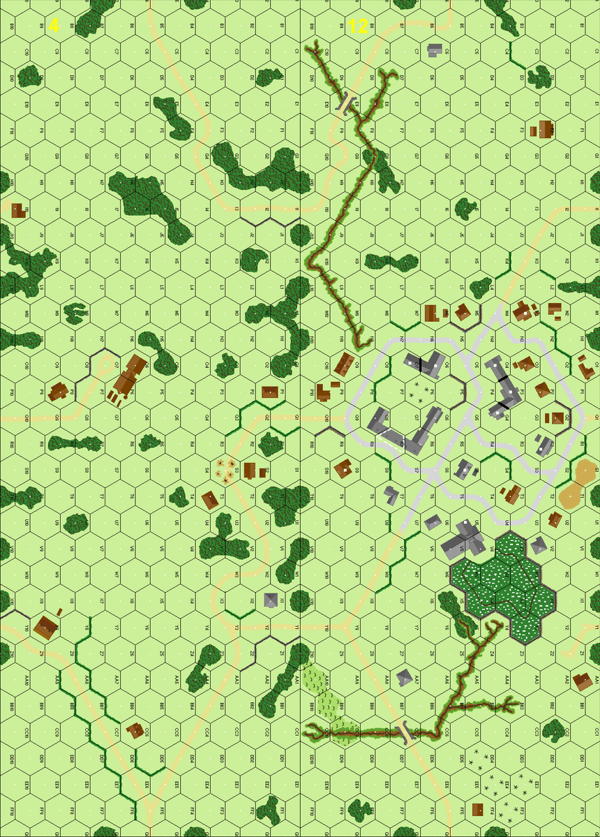 | 2021-06-14 | (D) Thomas Lynch | vs | Zebulon Tingley | German win | Good German rolls early on put the Americans behind the time curve. American had only barely broken into the village by Turn 5, conceded on German Turn 6 with a strong defense still intact and none of the fortified building locations taken. | ||