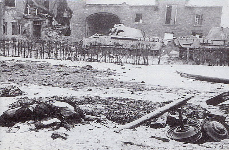 In the village of Rocherath, Panthers knocked out in the village heading south down the main street
