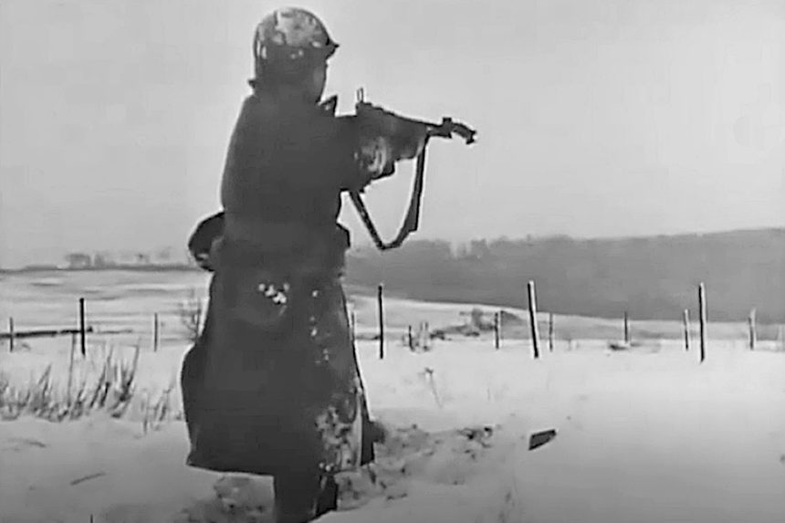 At 0525 on December 16th, an intense German artillery barrage commenced against U.S. forces astride Route N16, “Skyline Drive”, one of only a few paved roads in the Ardennes. A thick fog obscured anything beyond a few hundred yards and as the morning progressed the Americans began to hear Germans bypassing their positions to the north and south. These were units of the 77th Grenadier Regiment which were on the move to seize the bridge at Clervaux. Around 0730 the fog began to lift and shortly thereafter the Grenadiers attacked Hosingen in an effort to take control of the vital roads leading west. . .Attacker: German (II Batt., 77th Regiment, 26th Volksgrenadier Division)