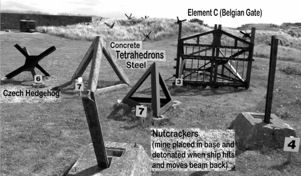 The Special engineer task Force was a vital component of the initial assault along with the infantry teams and the armor fire support. The assignment called for creation of clear lanes through the obstacles on the tidal flat. The lanes were to be 50 yards wide with eight lanes allotted to each of the infantry regiments in the initial assault and assigned to a demolition team. Demolition Team No. 1 was planned to land on the westernmost beach sector, Dog Green, but, due to the easterly flowing tidal current, the actual landing was at least one beach sector off, placing them near the boundary of Dog White and Dog Red. As the ramp dropped, accurate small arms fire covered the craft but the team scrambled into the water and headed for the seaward row of obstacles which included Element C (Belgian Gates).Attacker: American (Team No. 1, 146th Engineer Combat Battalion and A Company, 743rd Tank Battalion and F Company, 116th RCT, 29th Infantry)