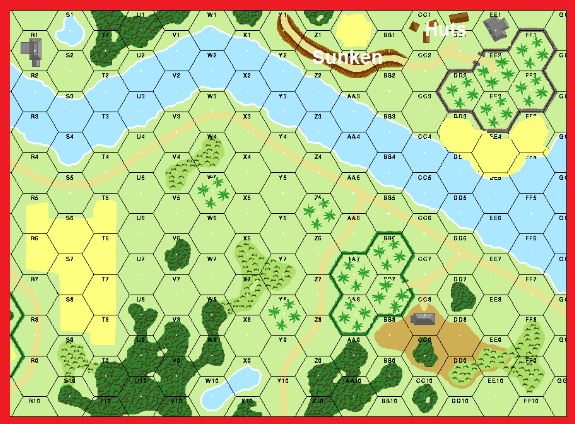 | Misc Rules: | PTO: NA (Exc: Grain/Marsh: Kunai (G6), Palm Trees (G4) exist). Elevated road is Sunken Rd |