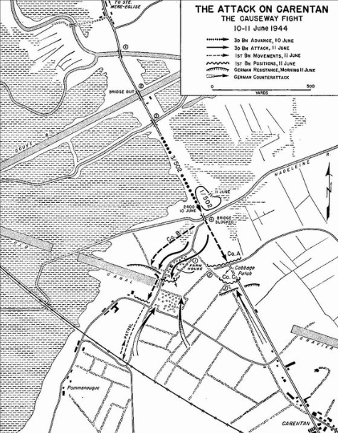 The enemy meant to either drive the 502nd Parachute regiment back across the causeway or destroy the two battalions holding the ground around a local farm. The hedgerow terrain concealed the approaching enemy. German troops crept along the hedgerows, coming onto American positions at the crossroads with rifle and machine-gun fire. The thirty-five men there from 1st Battalion had to fall back in a hurry. But seven men held out, creating a small defensive island on the extreme right, holding on throughout the day.Attacker: German (Local Garrison and 6th Fallschirmjäger Regiment)