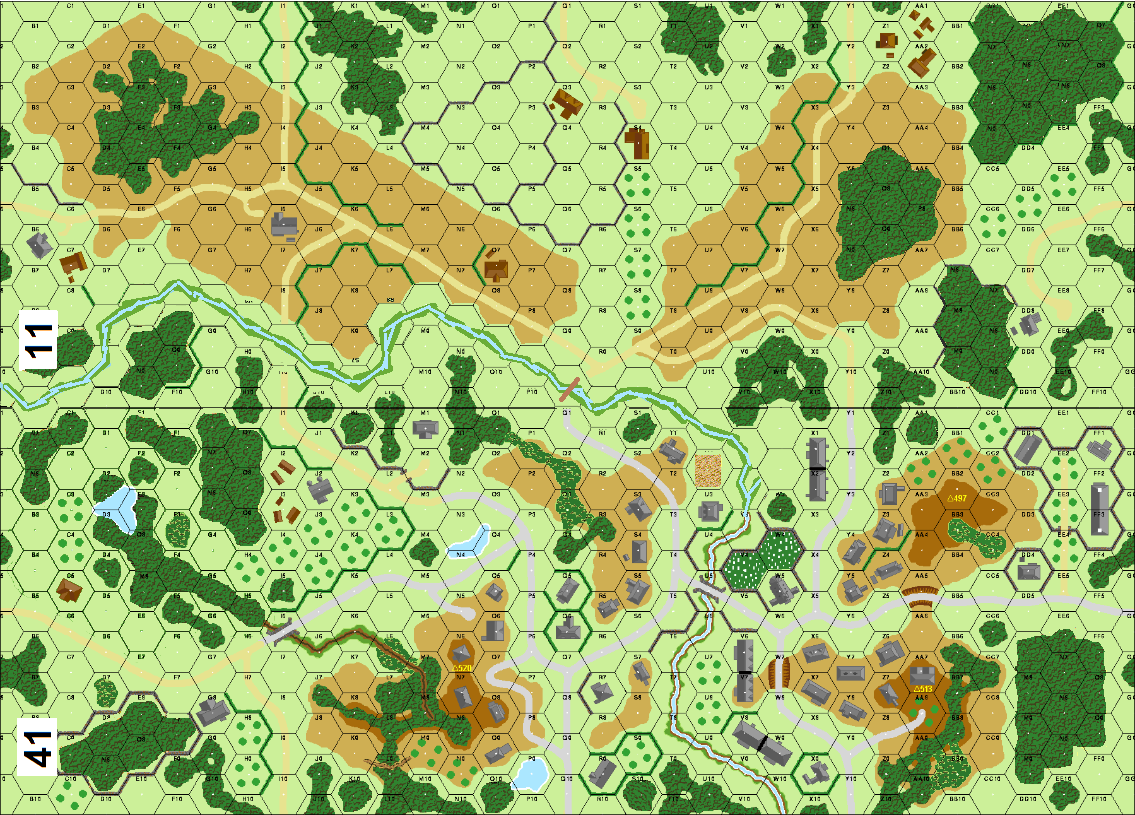 | Misc Rules: | Marsh, Grain, Brush: Woods, No Valley, Footbridge, Streams: Deep. |