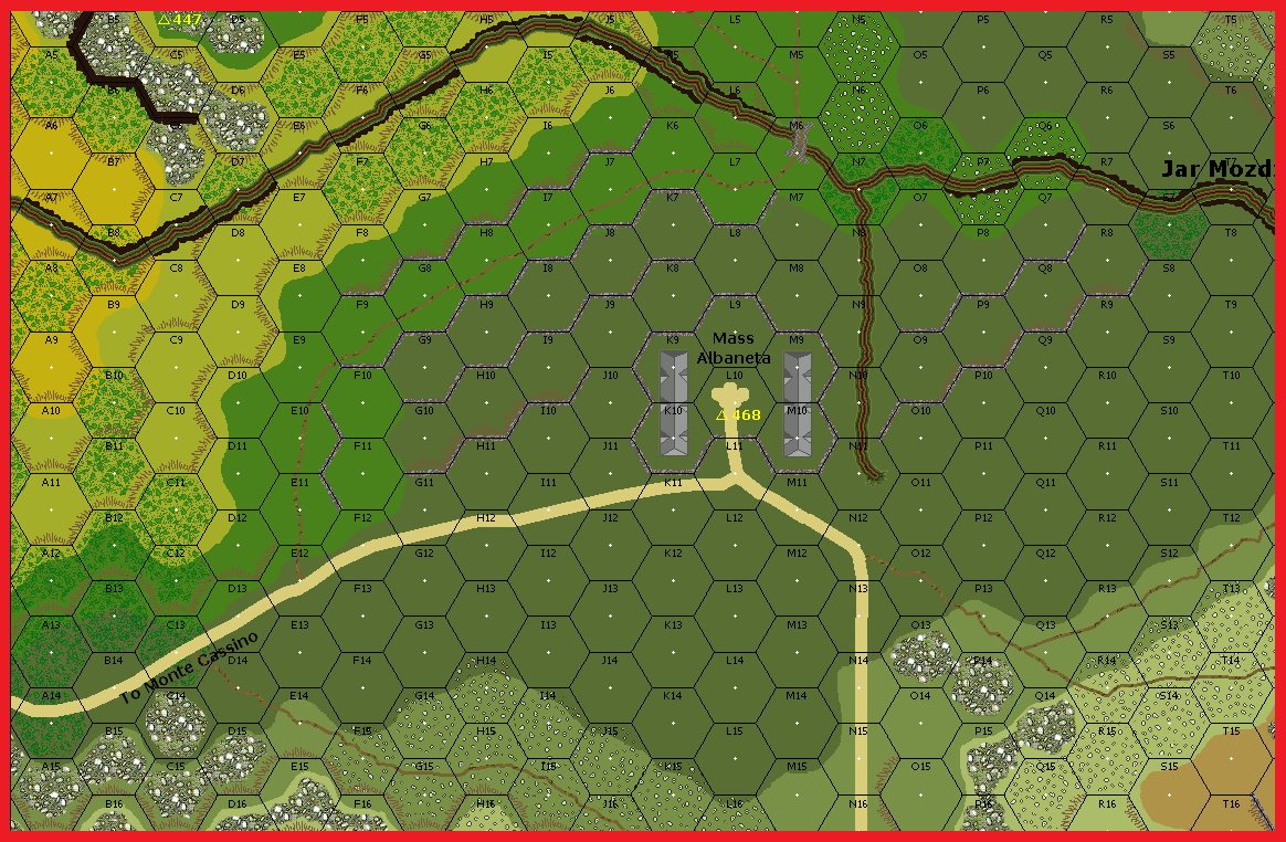 Earlier in the morning, the 141st and 142nd Infantry Battalions of the U.S. 36th “Texas” Division had made one last assault on Cassino Massif where they had come close to breaking through the German defenses of the Gustav Line. Weather conditions had been gradually getting worse and the 142nd directed their effort against Albaneta Farm. Despite receiving fire from Colle Saint Angelo and Point 575 as they descended Phantom Ridge, the 142nd was able to drive home its attack on Albaneta Farm. The German sector commander was at last forced to throw in his only reserve; a single platoon of engineers from the 200th Panzer Grenadier Regiment. This last ditch group arrived on the scene of a raging firefight around the farm. . .Attacker: German (Elements of 2nd Parachute Battalion, 1st Parachute Regiment, 1st Parachute Division and 200th Panzer Grenadier Battalion and 90th Engineer Battalion)