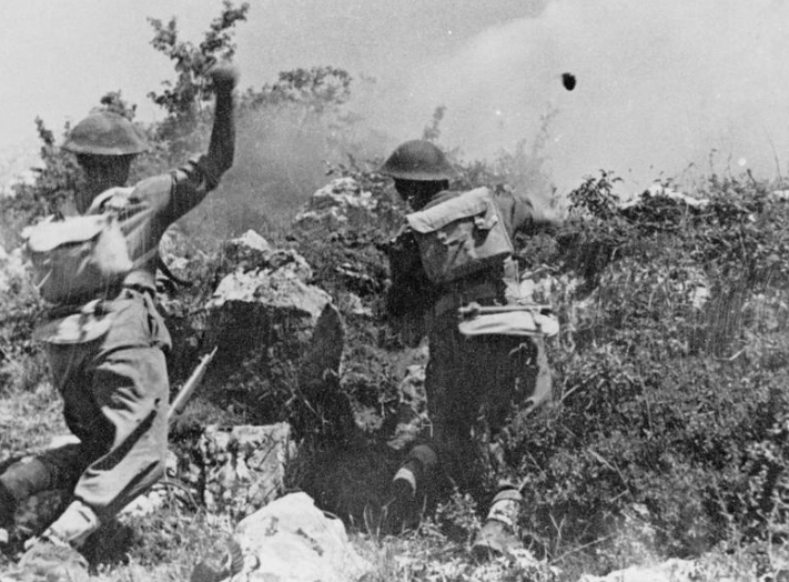 Capture of Point 593 was critical to support the flank during any attack directly against the Monastery, yet two previous attempts by the 4th Indian Division to take Point 593 had failed. During the dark hours of the morning on the 18th, the 4/5th Rajputana Rifles, 1st Royal Sussex, and a company of 1/9th Gurkhas jumped off on another attempt to capture Point 593 and Point 569. Despite heroic efforts by the platoon leaders of the various companies, the Germans held out resolutely on Point 569 and could not be pushed back off the reverse slopes of Point 593. As dawn approached, the German counter-attacks began and gradually built in intensity. Due to the nature of the terrain, the issue would be decided by hand grenades.Attacker: German (Elements of 1st Battalion, 3rd Parachute Regiment, 1st Parachute Division)