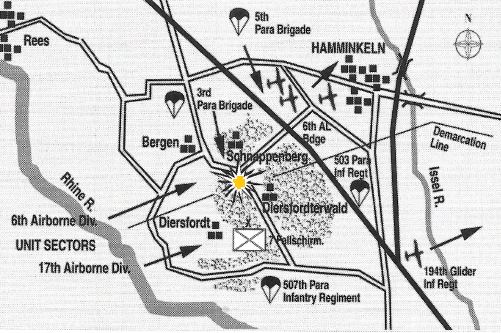 The British 3rd Parachute Brigade's objective during Operation Varsity was to land on the northwest corner of the Diersdorterwald and hold the western edge of the forest and the road junction at Bergen. Drop zone 'A' was barely 800 by 100 yards wide, but the American pilots dropped the paratroopers on the DZ with pin-point accuracy. Company B assigned to clear the south side of the DZ ran into resistance from two platoons of enemy paratroopers from the 7th Fallschirmjager Division as they attempted to clear the woods-line.Attacker: British (Elements of Company B, 8th Battalion, 3rd Parachute Brigade, 6th Airborne Division)