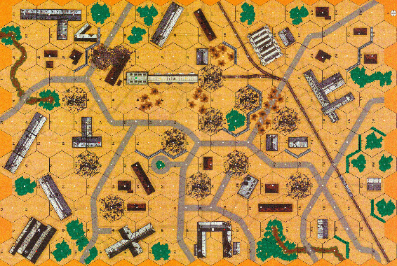 | Misc Rules: | Railroad depictions are 1/2 level hindrance. Rooftops on Grain Elevator |