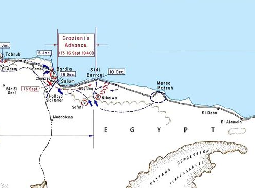 On 13 September 1940, the Italian 10th Army advanced into Egypt in Operazione E. As the Italians advanced, the small British force at Sollum withdrew to the main defensive position east of Mersa Matruh. The Italian advance was harassed by the 3rd Coldstream Guards, attached artillery and other units. After recapturing Fort Capuzzo, the Italians advanced approximately 95 kilometres (59 mi) in three days and on 16 September, the advance stopped at Maktila, 16 kilometres (9.9 mi) beyond Sidi Barrani. The Italians dug in and awaited reinforcements and supplies along the Via della Vittoria, an extension of the Via Balbia being built from the frontier.Attacker: Italian (Elements 9th Light Armoured Battalion, 1st Medium Tank Battalion & 1st Motorised Blackshirt Regiment)