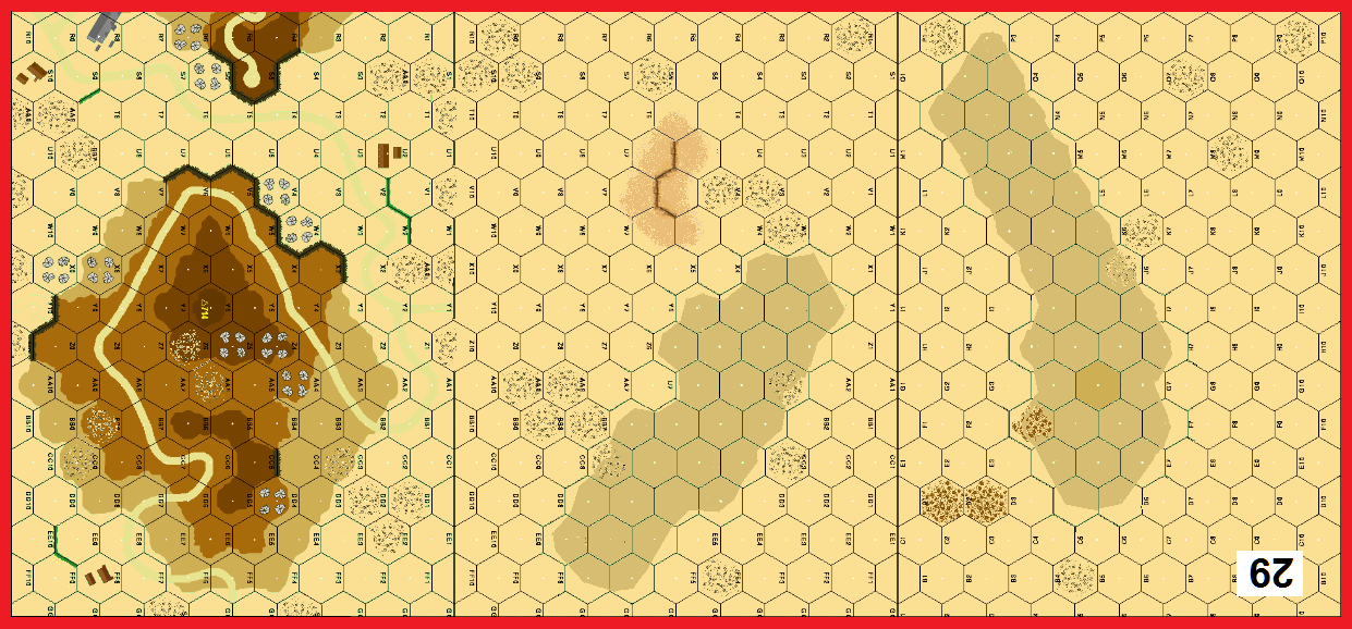 | Misc Rules: | Woods/Brush are Scrub. Late Afternoon Sun Blindness, Night on Turns 6-7 |