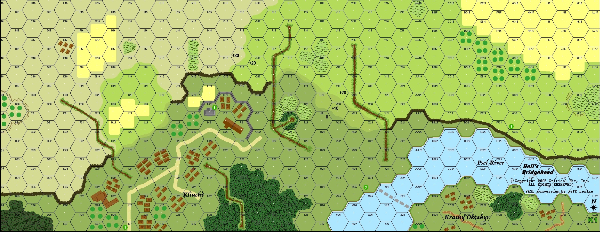 As the battle of Kursk intensified in the southern half of the salient, the Totenkopf division reached the last Russian barrier before Oboyan. Lightly defended fortification lined the River Psel, constructed over the previous weeks and months. Pressed by the German advance, the 6th Guards Army hurried portions of the 52nd Guards Rifle Division into these fieldworks just ahead of the arrival of the SS tankers.Attacker: German (SS) (3rd Battalion, 6th SS Panzer Grenadier Regiment)