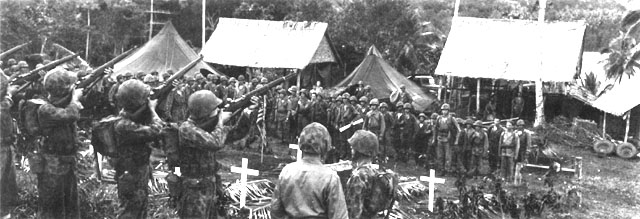 Burial ceremony, Viru Harbor, honors Marines of the 4th Raider Battalion killed in the first American offensive on New Georgia