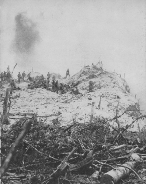 On September 15, the 1st Marine Division launched its invasion of Peleiu. The main defensive body was the Japanese 2nd Infantry Regiment. Of the Japanese force of 10,500, only 2,500 were dedicated to defending the landing beaches and holding the island's airstrip. On the 1st Division's left flank was a small chunk of high ground called the Point. This rock-strewn coral promontory split White Beach One. Its sheer western face dropped steeply into the ocean, leaving only its northern side as a viable avenue of approach. From the hill’s heights, the Japanese were able to pour murderous fire into the flanks of Marines trying to cross White Beaches One and Two, including fire from a 47mm anti-tank/anti-boat gun. On D-Day, the task fell to Company K, First Marines to knock out Japanese resistance on The Point.Attacker: American (USMC) (Company K, First Marine Regiment)