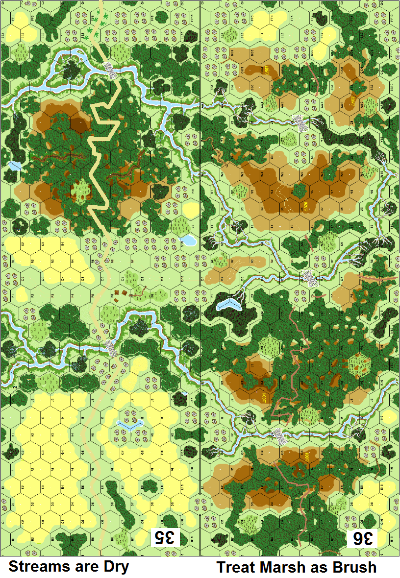| Misc Rules: | PTO (G.1), LJ (G2.1) Exc: 1 Road exists, Brush: Brush, Orchards: Crag, Marsh: Brush. A: AE (H1.22) |