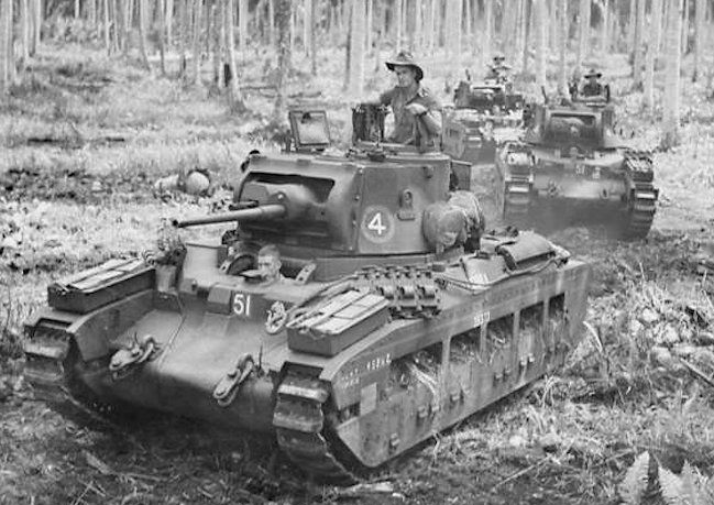 Australian forces had begun a campaign to clear the Japanese from the oil-fields and refineries on Borneo and nearby islands. On Tarakan, the small village of Peningkibaru lay in a shallow valley, just to the east of a ridge which had been taken by the elements of the 2/24th Battalion on May 2nd. The village, protected by minefields and a system of linked bunkers and tunnels, defied initial Australian efforts to capture it. From the ridge beyond, the Japanese were able to interdict the Anzac Highway to the airfield, making possession of the village tactically vital. For two days, A Company of the 2/24th had battled to push the Japanese out. Just after dawn on the 4th, while mortar, tank and machinegun fire was concentrated on the Japanese positions, the officers of A Company formed up their depleted unit to try once more. The Aussies found that the enemy had abandoned their forward positions during the shelling, but were now moving back. A meeting engagement ensued.Attacker: Australian (A Company, 2/24th Battalion and C Squadron, 2/9th Armoured Regiment)