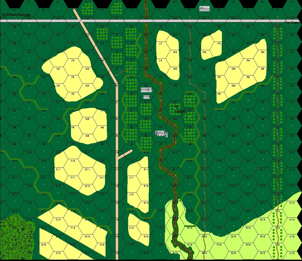 Fresh from the Ukraine, the two divisions of II SS Panzer Korps were thrown forward to restore a front that was falling apart. There remained a chance to turn the battle around and drive for the beaches, but that opportunity would not last. The attack planned for 0700 hours was delayed two hours due to the late arrival of the support artillery brigade with its hundred “Werfers”. 0900 came and the start was revised to 1300 hours. . . The Seaforths spent a quiet morning regrouping after the previous day’s battle with KG Weidinger, and reorganizing their position astride the crossroads at le Valtru. Patrols ventured out to investigate enemy intentions. At 1615 hours, a Pz IV tank burst out of the woods in front of C Company, and the assault by Hohenstaufen began.Attacker: German (SS) (Panzer Grenadier Regt. 20 and II Abt. Panzer Regiment 9 of 9th SS Panzer Division Hohenstaufen)