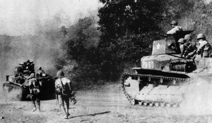 Baliuag, in Pampanga Province, was an important defensive position along the last of the defensive lines shielding the withdrawal of USAFFE troops into Bataan. Baliuag was then “…a town of rambling houses and nipa huts scattered along Route 5 and the north bank of the Angat River.” Indeed, if the enemy were to push south of Baliuag they would have been able to reach Plaridel, six miles to the south, and then cut the road leading from Manila to the vital bridge at Calumpit, cutting off any remaining South Luzon Force elements trying to make it into Bataan. As the 91 st Infantry Division (PA) withdrew, the 71st Infantry Divison (PA) initially defended Baliuag on 31 December 1941 against an assault by a battalion of Japanese infantry from the 48th Infantry Division supported by the 4th and 7th Tank Regiments. The Japanese force was led by Col. Seinosuke Sonoda, commander of the 7th Tank Regiment, and it also had a company of engineers also to repair and roads or bridges to facilitate the Japanese advance. Early Japanese efforts to ford a stream north of Baliuag were resisted successfully, and the enemy sought a new avenue of approach. The 71st stayed in Baliuag until early afternoon, when they departed at about 1400 enroute for Plaridel and movement onward to Bataan. By this time the Japanese had managed to reach the eastern end of Baliuag and by 1500 were massing to make an attack. With nothing in between the retiring 71st and the approaching Japanese combined force, Brigadier General Albert M. Jones, Commander of South Luzon Force, ordered the M3 Stuart tanks of Company C, 192nd Tank Battalion to be committed in order to hold the enemy at Baliuag. Beginning at 1700, the Japanese sent two platoons of medium tanks into Baliuag, and there they were engaged by there by two platoons of Company C/192nd in a back-and-forth fight lasting some two hours long.Attacker: American (Company C, 192nd Tank Battalion)