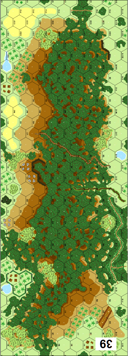 At 0800, 23 January, the aircraft lookout on Mt. Pucot reported to Commander Bridget that a Japanese seaborne landing had been made on Longoskawayan Point, 2,000 yards west of Mariveles. Japanese strength was estimated at only one squad. Platoon Sergeant Robert A. Clement was ordered by Bridget to command a hastily gathered platoon of 36 sailors to support the two Marine lieutenants. Clement asked for another Marine noncommissioned officer, whom he did get, and led his men into the jungle. Sergeant Clement deployed his men in loose formation and moved toward Longoskawayan Point.- - - - Here is a unique situation not normally seen in ASL, a meeting engagement at night. Two opposing infantry forces must climb the board 39 hill and capture as much ground as possible. Both sides attack in this tactical puzzle.Attacker: American (Naval Battalion)