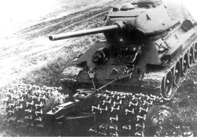 The most important Soviet objective in the central sector of the 1944 summer offensive was the main Moscow-Minsk highway. This area had been bitterly contested in the previous fighting in the autumn and winter, and the Germans had the area heavily fortified and mined. The highway defenses were manned by the 78th Sturm Division commanded by Gen. Lt. Hans Traut, which was reinforced to hold this key objective. As a result the 11th Guards Army attacking toward Orsha used special assault groups. T-34's with minerollers attached supplemented the usually heavily armed assault engineer units as they advanced.Attacker: Russian (11th Guards Army and 116th Separate Engineering Tank Regiment)