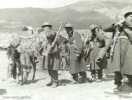 Australia soldiers moving up to the mountains in Greece