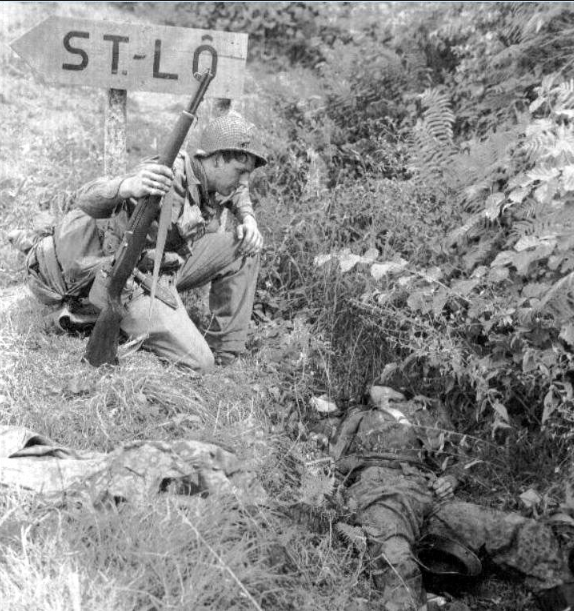 Between the Normandy invasion on D-Day and the Breakout from the hedgerow country during Operation Cobra, there occurred a hard, slow fight moving from hedgerow to hedgerow and from town to town. One of the major objectives of this battle was St. Lo. In the hedgerow country with limited visibility, any small hill took on great importance as it provided vital observation. 116th Infantry had just taken one such hill known as Martinville Ridge and dug in to consolidate. German tactical doctrine called for immediate counterattack before an enemy could reinforce any recently taken position. Martinville Ridge would be no excpetion.Attacker: German (3rd Parachute Division)