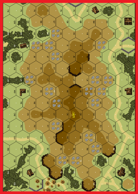| Misc Rules: | Woods on hill are Crag. D: Pillbox4,Trench4, Wire, Mines |