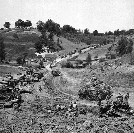 Canadians advance between Hitler and Gustov lines, Liri Valley, Italy. May 24, 1944