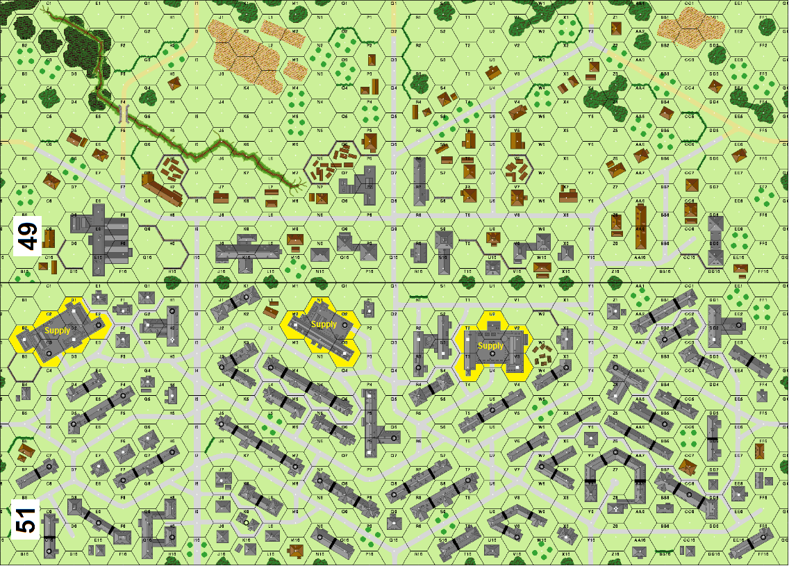 | Misc Rules: | Brush is Marsh, A: FTV2. D: Trucks leave Supply Ctrs and exit South, FB (B23.9), MOL (A22.6) |