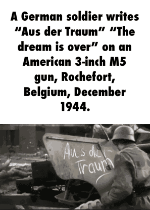 "the Dream is Over" -- The Battle of the Bulge was only days old and Fritz Bayerlin’s Panzer-Lehr Division pressing westward throughout the day. Kampfgruppe von Poschinger took St. Hubert without any resistance late that night. The advance continued towards the important road centre of Rochefort. Early the 23 December the town was shelled and a German reconnaissance patrol was sent in and reported that the town was empty. Rochefort was in fact well defended by some of the US 3rd Battalion, 335th Infantry Regiment reinforced by with Regimental anti-tank guns and one platoon each from the 638th Tank Destroyer Battalion, 309th Engineer Combat Battalion and 29th(Separate) Infantry Regiment. At about 0200 hours, Panzer-Lehr Division resumed the advance and was stopped by intense crossfire. Bayerlin was forced to set up a systematic and time-consuming attack. The American defenders fought back stubbornly from house to house. The Panzer Lehr’s field guns were brought up to pound the eastern approaches. Then supported by weight of Panthers the Grenadiers of Poschinger’s Kampfgruppe launched their assault crossing the L’Homme River by early afternoon.Attacker: German (Kamfgruppe von Poschinger, Panzer Lehr Division)