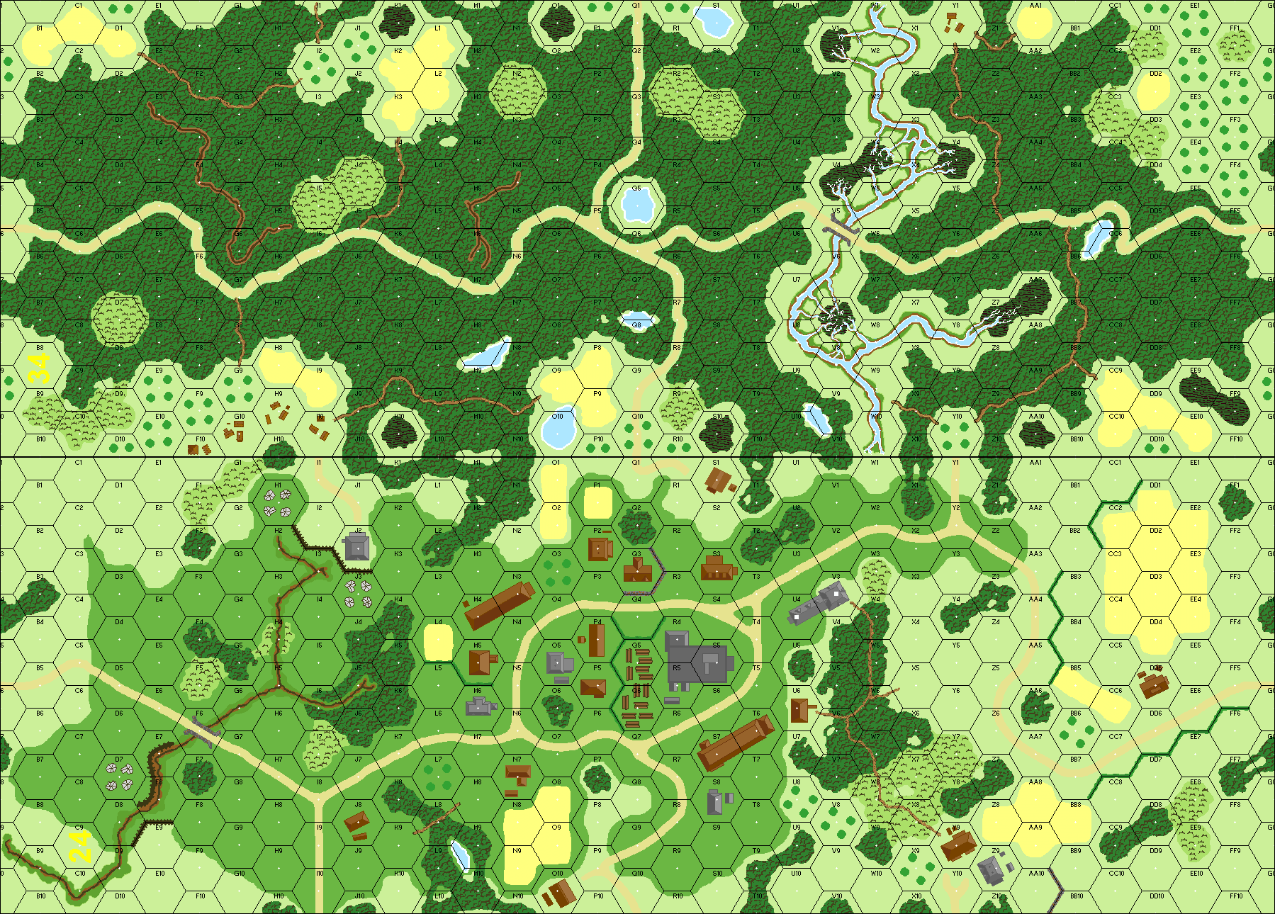 | Misc Rules: | Bridges on Bd 34 are wooden footbridges. NO Quarter both sides. D: may declare Hand-to-Hand combat |