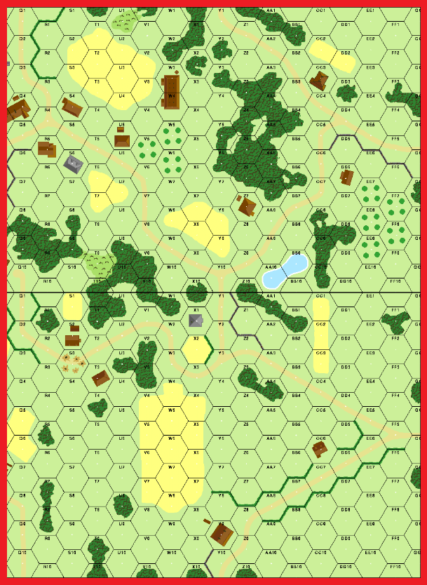 None listed . . . Germans must exit 2 Tigers off the north edge for winAttacker: German (20th Pz. Div. and Pz.Jag Abteilung 654)