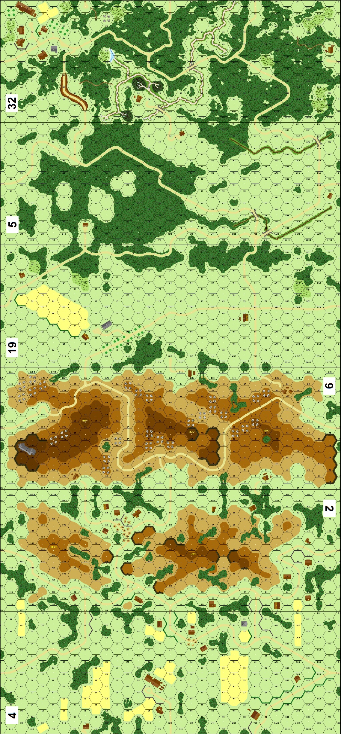 The Russians were being forced back to the Dneiper River by German infantry divisions thrusting from the west and south. A Russian battalion, forming part of an infantry brigade, received orders to dig in south of a heavily forested crossroad leading to Kanev and to hold out to the last man. The German 169th Infantry Regiment of the 68th Division, which was moving up from the south, was to capture that crossroad and establish contact with German forces driving towards the Dneiper from the west. In organizing their defense, the Russians set up two lines of combat posts -- one each along two parallel ridges south of the crossroad. The Russian main battle positions was organized in-depth within the forest; complete with well-camouflaged foxholes, wooden mines, and plenty of snipers. At 0900, the 1st Battalion of the German 169th Infantry Regiment approached the forest from the south.Attacker: German (Advance Guard of the 1st Bn., 169th Inf. Rgt., 68th Infantry Division)