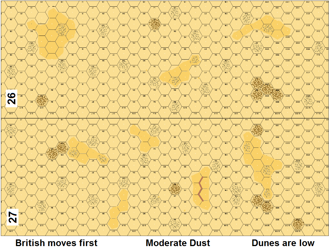South of El Alamein, British forces broke through, heading for the Rahman Track, where Axis field artillery was concentrated. Rommel quickly ordered an anti-tank screen set up in the path of the British armor (Stage 1), realizing it was only a delaying tactic until his armored divisions could be brought into the fray (Stage 2). . .Attacker: British (New Zealand Division / 9th Armoured Brigade)