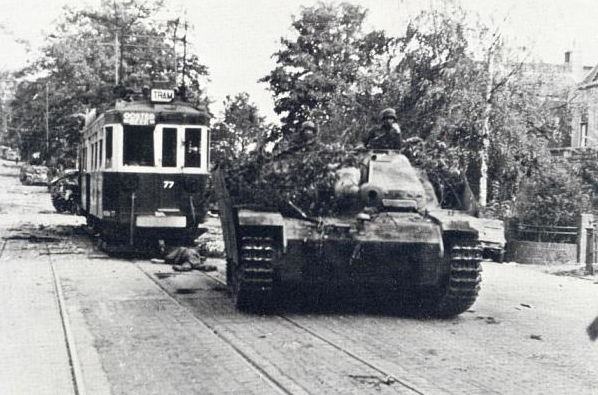 StuG III moving past a tram in Oosterbeek (oosterbeek stug.png)Imagehoxson11625