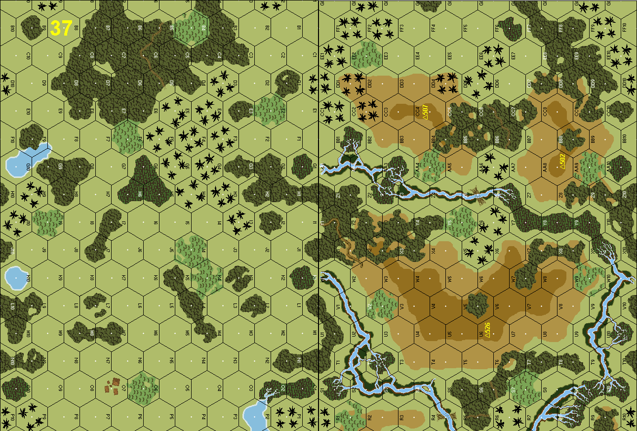 | Misc Rules: | PTO, LJ. Palm Tree hexes are treated as Open Ground |